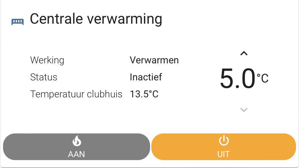 Als het te koud is kan de thermostaat bediend worden op de iPad. Deze is op het scherm van de iPad zichtbaar zoals in de afbeelding.