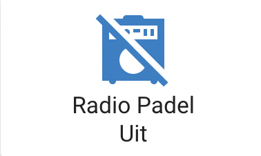 Als de radio bij de Padelbanen te horen moet zijn, dan hoef je alleen de optie Radio Padel te kiezen. Het geluid is dan zowel buiten als binnen als bij de Padelbanen te horen. Wil je geen muziek op de speakers van het clubhuis en/of terras zet dan de bijbehordende schakelaars uit.