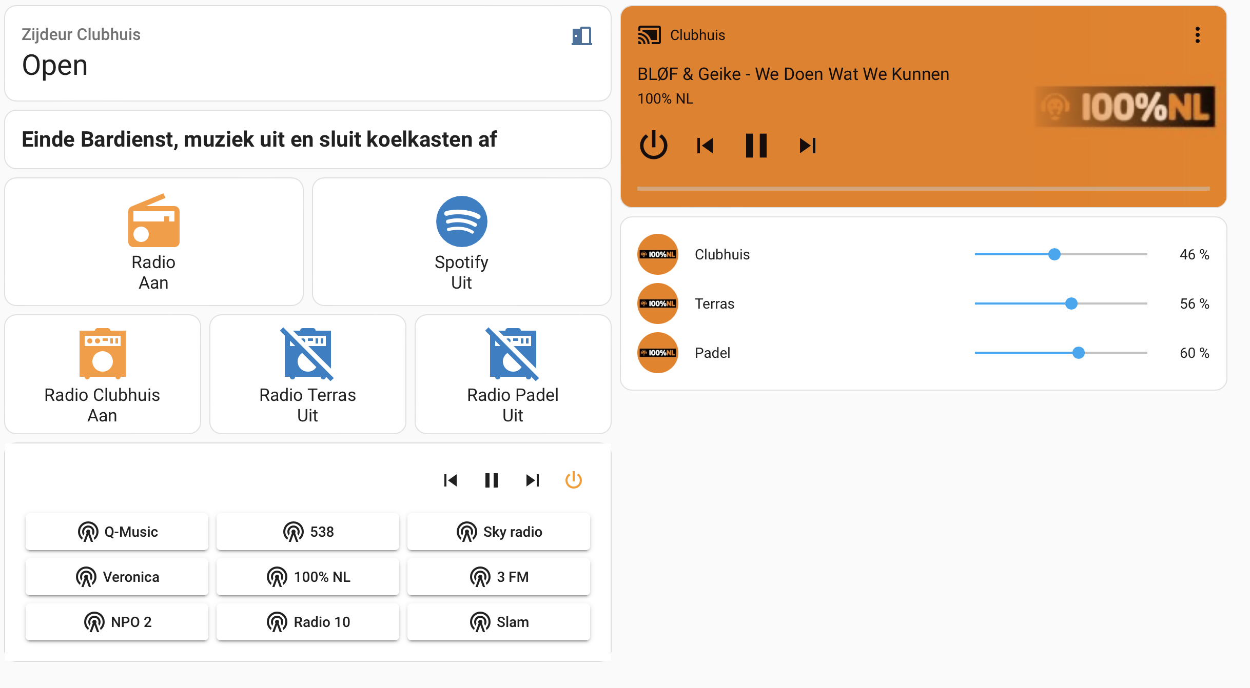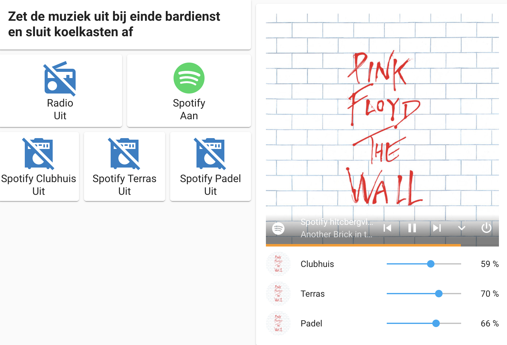 Zet na afloop van je bardienst de muziek uit door op de knop Radio(als de radio aanstaat) of de knop Spotify (als Spotify aanstaat) te drukken .