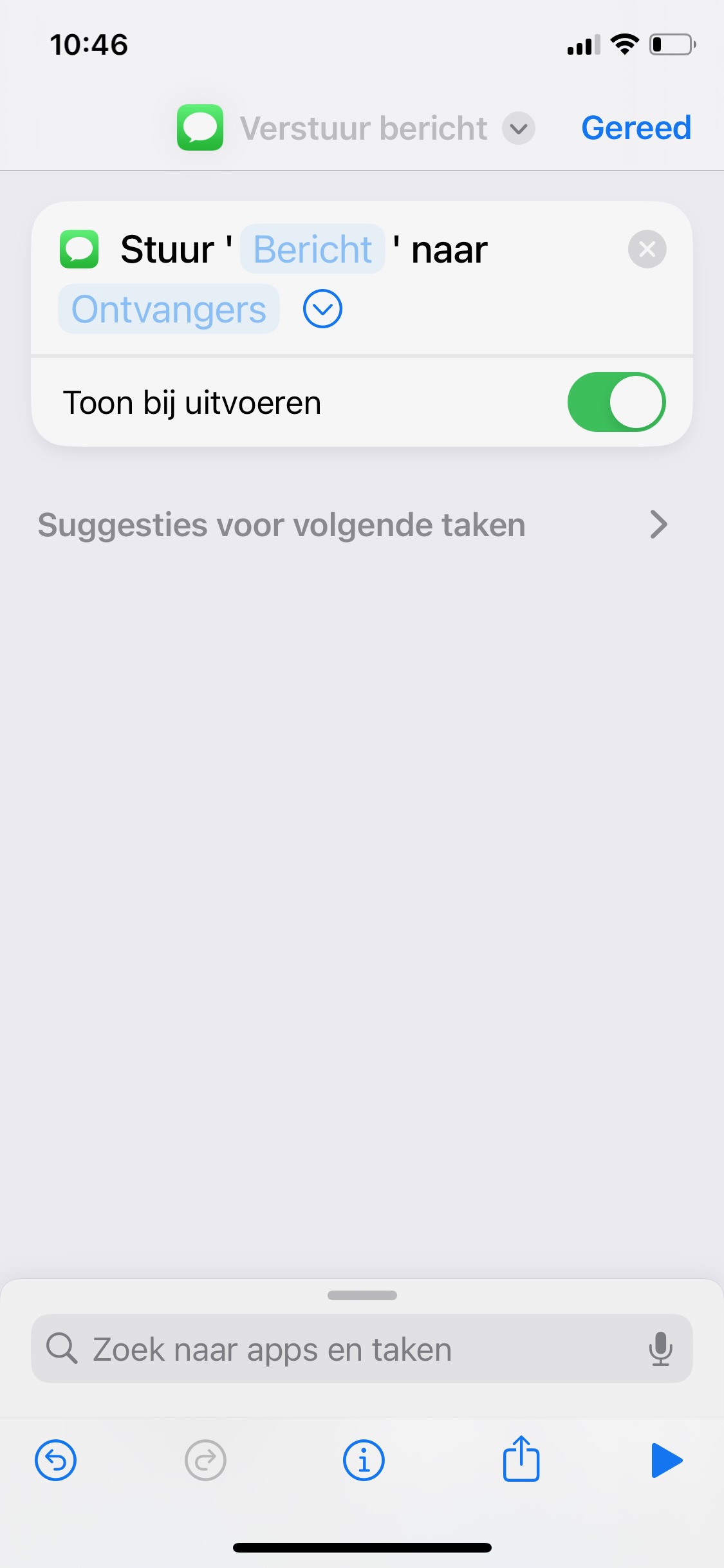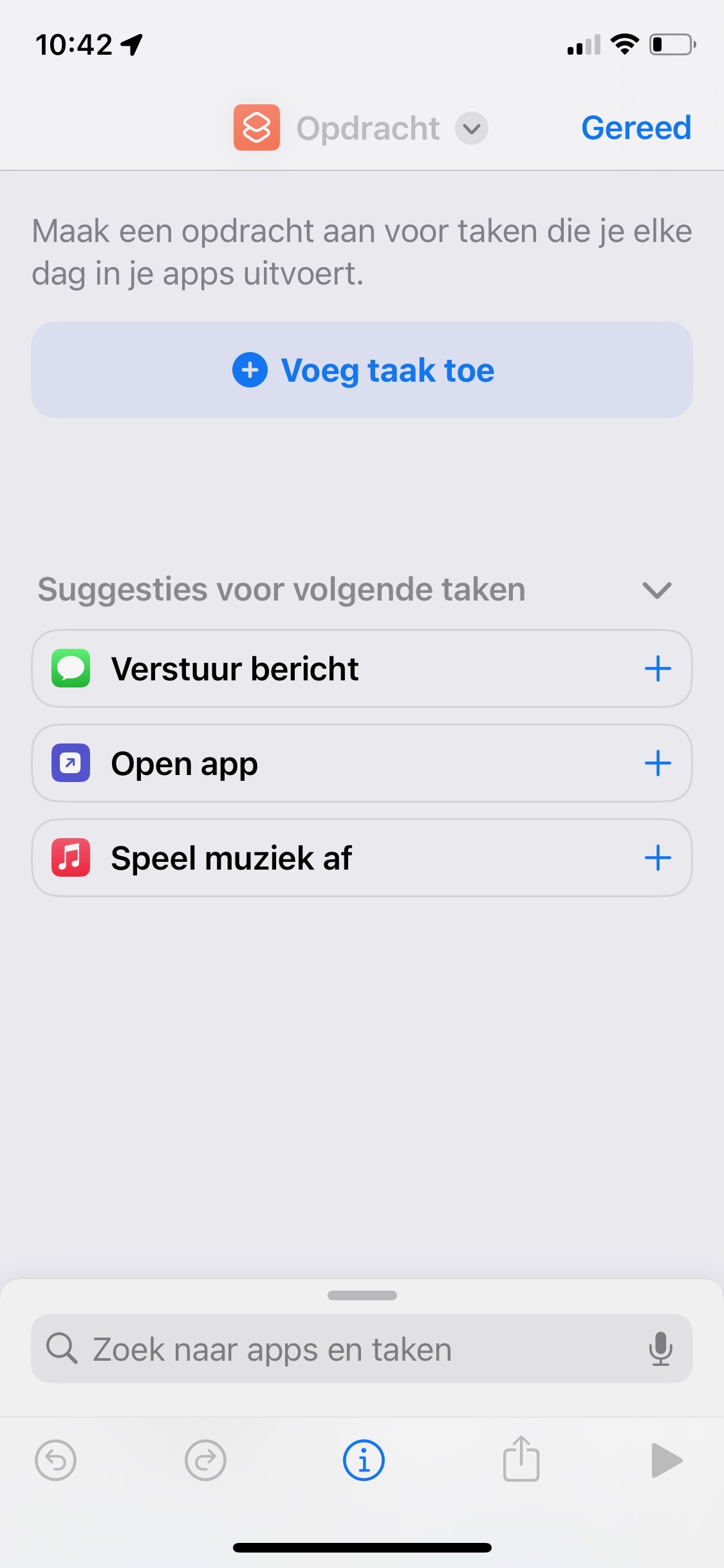 Aanmaken van een button op een iPhone- open app Opdrachten(gebruik als je de app niet kent de zoekfunctie op iPhone en tik in: Opdrachten)